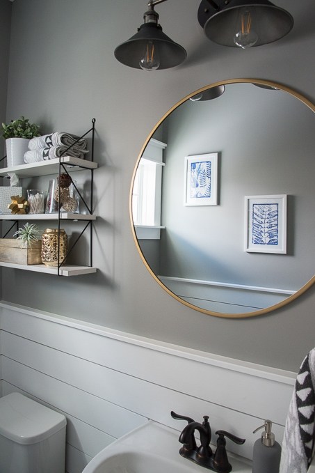 If you’re on a budget or just don’t desire for a full scale remodel at the moment I believe the most affordable and significant ways to update a bathroom is the flooring, vanity, and lighting. If the vanity is even too much for you consider re-staining or painting it and changing out the hardware for something new.