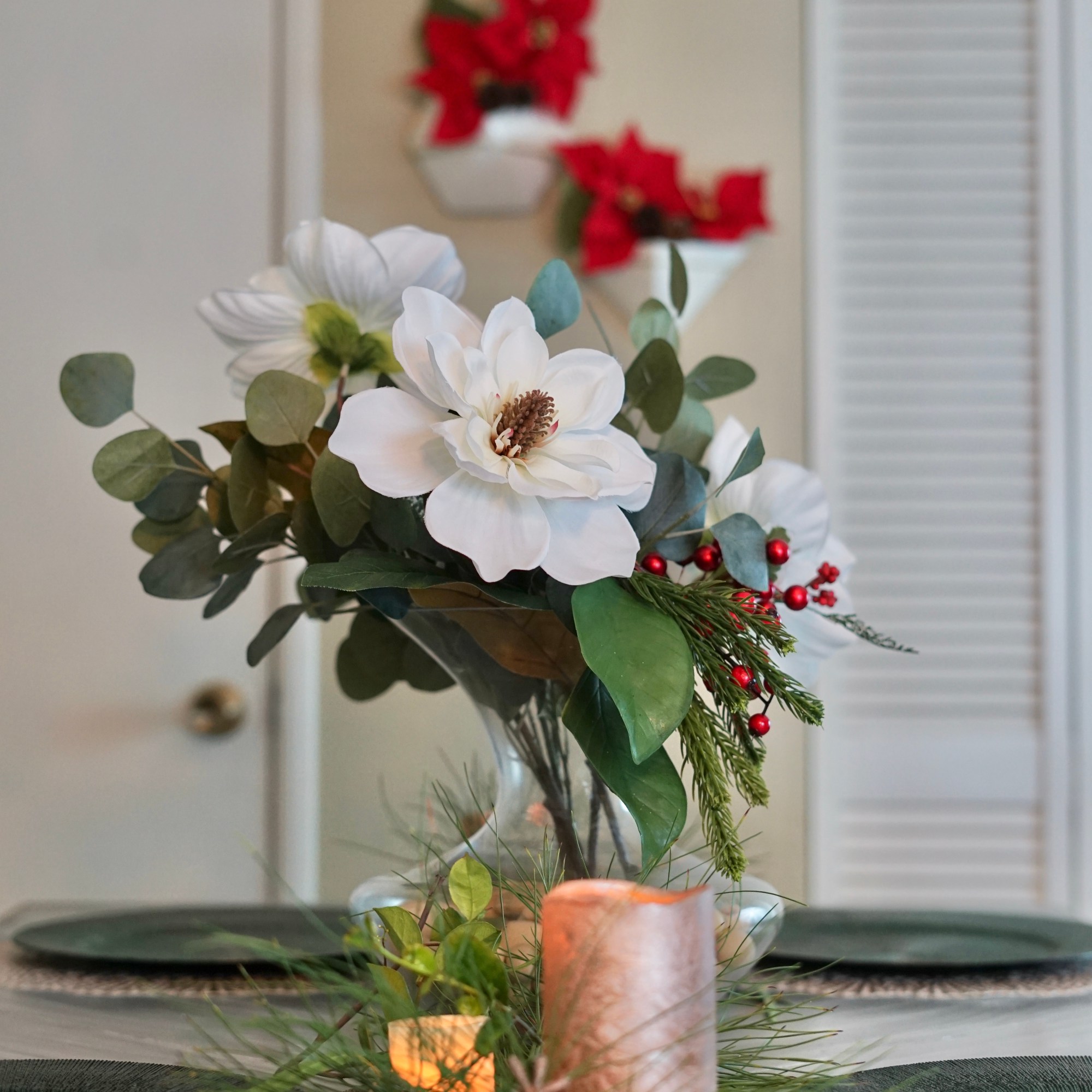 I stayed with traditional colors this year and kept it simple. I made sure to use what I already had with the exception of few new glass ornaments on my tree. Much of the decor you will see below I got at the Dollar Tree, 99 cent store, Ross, Michael’s and HomeGoods. You will also see how I kept some of regular decor items and transitioned them into Christmas with minimal effort. No need to break the bank!
