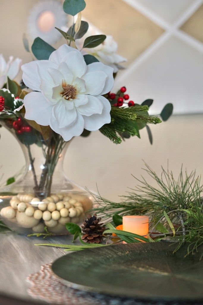 Also know that snipping fresh foliage from around the neighborhood can easily bring in some welcoming and warm elements around the table and living area. Branches and flowers are free in parks and neighborhood trails take advantage of mother nature for the positive.