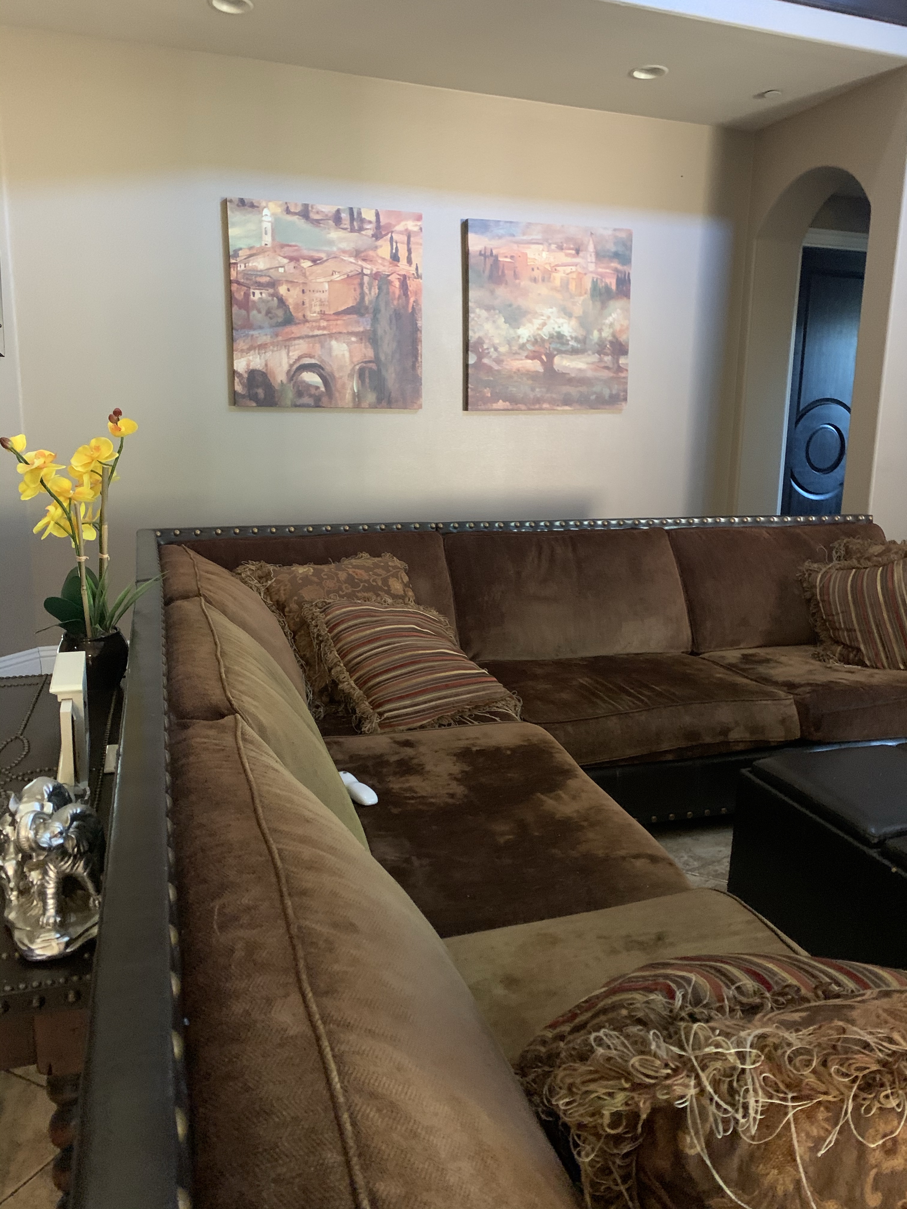 - One thing that often happens in our spaces is that it gets muted out with browns and grays. We forget about adding a little pop of color. This not only refreshes and brightens your space but gives it a whole new look. Sometimes something as simple as adding pillows can make a difference. Many of us keep décor pillows until they are old and flat. Changing these out does not have to cost much. Below you can see what a difference this made for a recent client of mine.